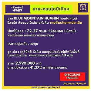 ขาย Blue Mountain Huahin คอนโดสไตล์รีสอร์ท ห้องมุม  ขายต่ำกว่าราคาประเมิน