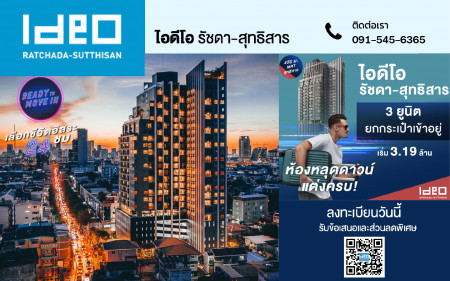 หาคอนโด ใกล้รถไฟฟ้า ห้องแต่งสวย น่าอยู่ แนะนำ Ideo Ratchada-Sutthisan (ไอดีโอ รัชดา-สุทธิสาร)