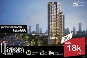 ให้เช่า คอนโด ทำเลดีใกล้ MRT Rama9 Chewathai Residence อโศก 35 ตรม. ใกล้ APL เพชรบุรี