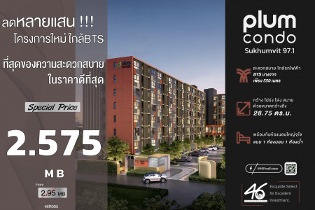 ขาย คอนโด โครงการใหม่ Plum Condo สุขุมวิท 97.1 28.75 ตรม. ขายต่ำกว่าราคาหน้าโครงการ