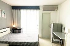 - 1 ห้องนอน 1 ห้องน้ำ ขนาด 26 ตร.ม ตึก C สีม่วง ห้องอยู่ชั้น 7