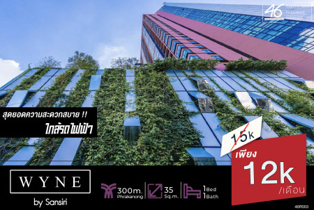Code PSK09082222.....Wyne By Sansiri สำหรับเช่า 1 ห้องนอน 40 ตร.ม. ชั้นสูง ราคาสุดHOT