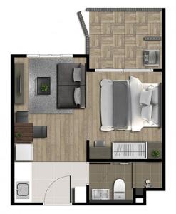 ◆ ห้อง Studio ขนาด 26.92 ตร.ม. วิวนอกโครงการ ชั้น 3