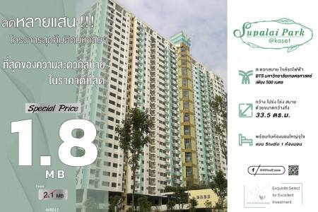 ขาย คอนโด ห้อง Studio Supalai Park Kaset 33.5 ตรม. ใกล้มหาลัย ฯ ใกล้รถไฟฟ้า ราคาดีมากๆ
