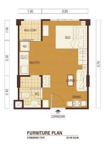 ห้องชุด Studio type ขนาด 25 ตร.ม.