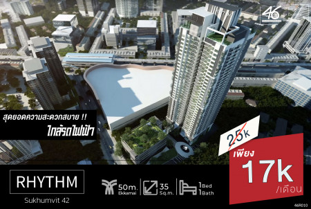 ให้เช่า คอนโด ด่วน พร้อมอยู่ RHYTHM สุขุมวิท42 45 ตรม. ใกล้ BTS เอกมัย