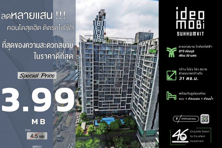 ขาย คอนโด IDEO MOBI สุขุมวิท 30 ตรม. 1 ห้องนอน ทำเลดีใกล้ BTS
