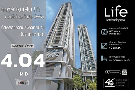 ขาย คอนโด 2 นอน Life รัชดาภิเษก 46 ตรม. ราคาถูกที่สุดในตึก ณ ตอนนี้