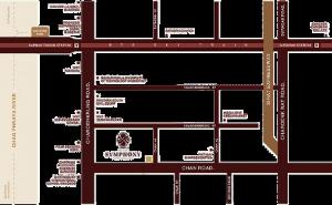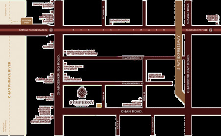 ห่างจากถนนจันทน์เพียง 50 เมตร ห่างจากถนนเจริญกรุง 250 เมตร ห่างจาก BTS สะพานตากสิน 1.25 กิโลเมตร ใกล้กับ เอเชียทีค ศาลกรุงเทพ-ใต้ และโรบินสัน(บางรัก)