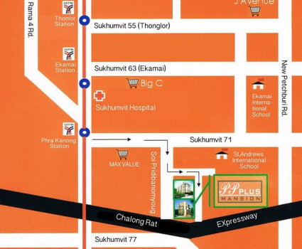 PP Plus Sukhumvit 71 (พีพี พลัส สุขุมวิท 71) ระยะทาง 1.8 กิโลเมตร หรือประมาณ 10 นาที โดยรถยนต์จาก พระโขนง ถ้าคุณเดินทางด้วยรถยนต์