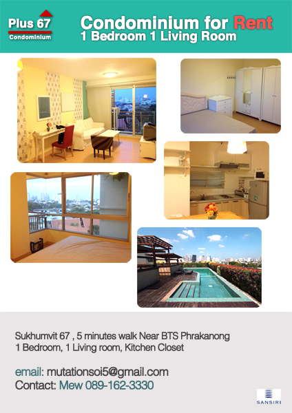 ให้เช่าคอนโดPlus67 - 20,000 ต่อเดือน ติดต่อคุณ มิว