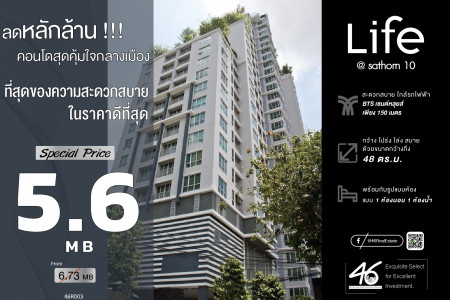 ขาย คอนโด 1 ห้องนอน Life @ สาทร 10 41 ตรม. ราคาถูกกว่าตลาด ติดรถไฟฟ้า