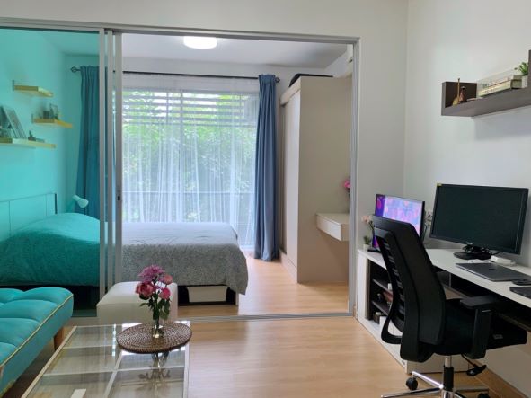 CM03804 ขาย คอนโด เอ สเปซ มี สุขุมวิท 77 A Space Me Sukhumvit 77 คอนโดมิเนียม ถ.สุขุมวิท 77 ซ.อ่อนนุช 37/1 แขวงอ่อนนุช เขตสวนหลวง กทม. ใกล้รถไฟฟ้า 3 สาย 1 นาทีถึงสถานีสีเหลือง, สถานีอ่อนนุช, รถไฟฟ้าแอร์พอร์ตลิ้งค์ สถานีหัวหมาก ใกล้ซีคอนสแควร์, พาราไดซ์พาร์ค, สวนหลวง ร.9 วิวสวน ไม่โดนแดด ลมเย็นสบาย เป็นส่วนตัวสุดๆ ชั้น 2 ตึก เอ ขนาด 28.54 ตรม. กั้นห้องเป็นสัดส่วน เฟอร์นิเจอร์และเครื่องใช้ไฟฟ้าครบ เฟอร์นิเจอร์ครบครัน - เตียงนอน 5 ฟุต - ตู้เสื้อผ้าบิ้วอิน - โต๊ะเครื่องแป้ง - ชั้นวางรองเท้า - โซฟาเบด - โต๊ะวางทีวี - โต๊ะทำงาน+เก้าอี้ทำงาน - โต๊ะกลาง - เก้าอี้สตูล - เครื่องใช้ไฟฟ้า แอร์, ทีวี, ตู้เย็น, เครื่องซักผ้า, เครื่องทำน้ำอุ่น+ Rain shower,หม้อทอดไร้น้ำมัน, เตาไฟฟ้า, เครื่องดูดควัน - ครัวบิ้วอิน ราคาขาย 1,890,000 บาท *สิ่งอำนวยความสะดวก* ส่วนกลาง - มีสระว่ายน้ำขนาดใหญ่ 2 สระ - ฟิตเนส - ห้อง Co-working space - ลิฟต์จอดรถอัติโนมัติ - บริการรถกอล์ฟ รับส่งหน้าปากซอย - รถตู้ รับ-ส่ง BTS อ่อนนุช *สถานที่สำคัญ* – BTS อ่อนนุช – ใกล้รถไฟฟ้าสายสีเหลือง – Pickadaily Bangkok 50 ม. – Big C Extra อ่อนนุช 3.8 กม. – เทสโก้โลตัส สุขุมวิท 50 (อ่อนนุช) 4.4 กม. – ซีคอนสแควร์ (เทสโก้โลตัส) 2.5 กม. – ตลาดเอี่ยมสมบัติ 850 ม. – ตลาดอ่อนนุช 3.8 กม. – ตลาดนัดรถไฟ ศรีนครินทร์ 3.2 กม. – พาราไดซ์พาร์ค ศรีนครินทร์ 3.3 กม. – สวนหลวง ร.9 7.9 กม. – โรงพยาบาลกล้วยน้ำไท 2 *สนใจติดต่อสอบถามเพิ่มเติมได้ที่ 086-802-5609 line 0868025609 ป๊อบ* *บริการรับฝากขาย บ้าน ที่ดิน คอนโด และอสังหาริมทรัพย์ทุกประเภท ฟรี ค่าคอมมิชชั่น กรณีเจ้าของขายเองได้*