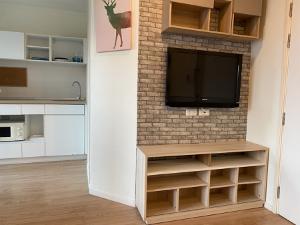 ชั้น 16 ตึก A พื้นที่ใช้สอยขนาด 27 ตารางเมตร 1 ห้องนอน 1 ห้องน้ำ - แอร์ 2 ตัวในห้องนอน และห้องนั่งเล่น