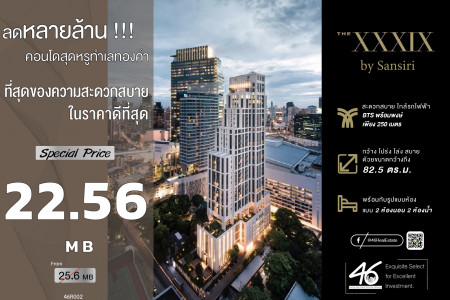 ขาย คอนโด สุดหรู 2 ห้องนอนใหญ่ THE XXXIX BY SANSIRI 81.58 ตรม. สุดยอดคอนโดตัวท็อป ราคาถูกที่สุดในตึก