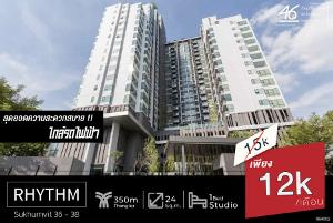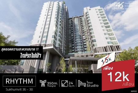 ให้เช่า คอนโด ราคาดีที่สุดในตึก RHYTHM สุขุมวิท 36-38 24 ตรม. ห้องชั้นสูง ได้วิวโล่ง ไม่บล๊อก