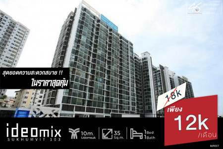 ให้เช่า คอนโด ถูกสุดในตึก Ideo Mix สุขุมวิท 103 30 ตรม.