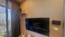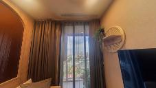 ให้เช่าห้องตกแต่งสวย ห้องนั่งเล่นเฟอร์และบิ้วอินครบ วิวสระว่ายน้ำ คอนโด Oka haus