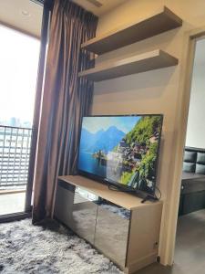 ให้เช่าห้องตกแต่งสวย ห้องนั่งเล่นเฟอร์และบิ้วอินครบ วิวสระว่ายน้ำ คอนโด Oka haus