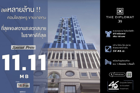 ลดอย่างหนัก 1 นอนขนาดใหญ่ The Diplomat 39 พร้อมพงษ์ 54 ตรม. ขายขาดทุนหลายล้าน ราคาดีที่สุดในตึก
