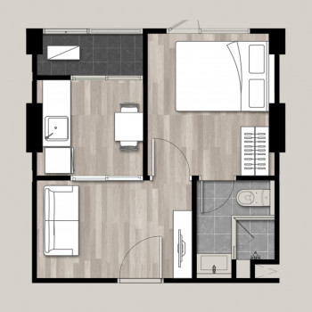 - ชนิด 1 ห้องนอน 1 ห้องน้ำ