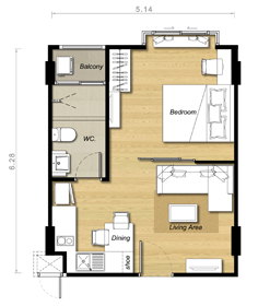 S1 Condo พระราม 9 ห้อง 32 ตรม.
