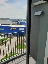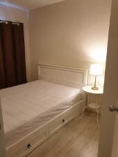 ตู้เสื้อผ้าแบบบิ้วอิน , เตียงนอนพร้อมที่นอน , โคมไฟ , พรม , ไมโครเวฟ , เครื่องซักผ้าแบบฝาหน้า , เครื่องทำน้ำอุ่น