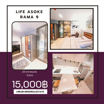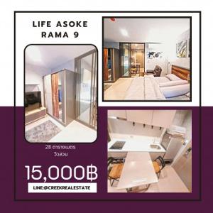 ให้เช่า คอนโด Life อโศก-พระราม 9 26 ตรม. Studio 1 น้ำ ค่าเช่า 15000 ต่อเดือน