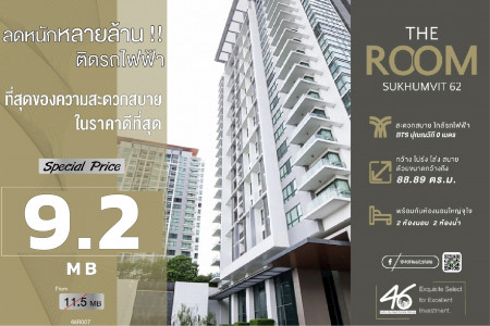 ขาย คอนโด ห้องใหญ่สุดในโครงการ THE ROOM สุขุมวิท 62 88.89 ตรม. ลดเป็นล้าน ถูกสุดในตลาด