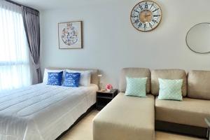 ขายราคาดีห้องนอนตกแต่งสวย คอนโด M ladprao ครบทุกอย่างลากกระเป๋าเขามาอยู่ได้เลย