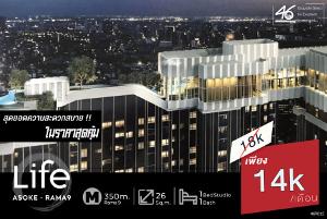ให้เช่า คอนโด วิวสวย Life อโศก-พระราม 9 28 ตรม. เดินทางสะดวก หาของกินง่าย ใจกลางเมือง