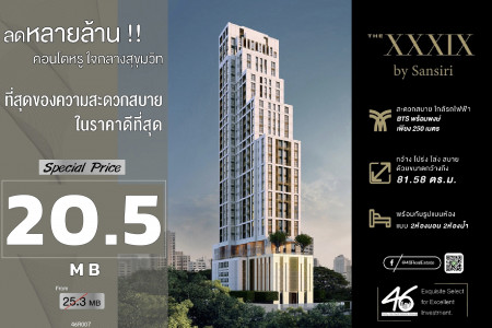 ขาย คอนโด 2 นอน ขนาดใหญ่ THE XXXIX BY SANSIRI 82.5 ตรม. คอนโดหรู ใจกลางเมือง ในราคาที่ลดลงมาเยอะมาก