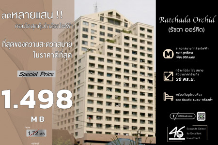 ขายด่วน คอนโด Ratchada Orchid (รัชดา ออร์คิด) ใกล้MRTสุทธิสาร. ราคาเพียง 1.58ล้านบาท เจ้าของขายเอง