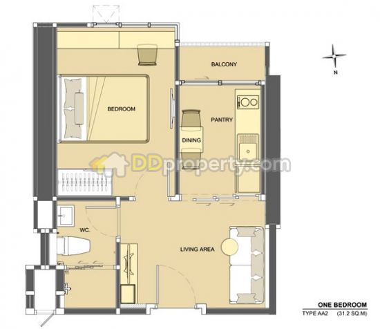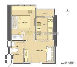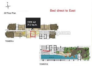 Room size : 31.2 sq.m. (1 bed room) Tower A, 35th floor, Balcony direct to South (City View)