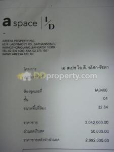 ขายคอนโดโครงการ คอนโด aspace id อโศก-รัชดา - 2170000 บาท ติดต่อคุณ Napatsorn Amorncheewasillapakul