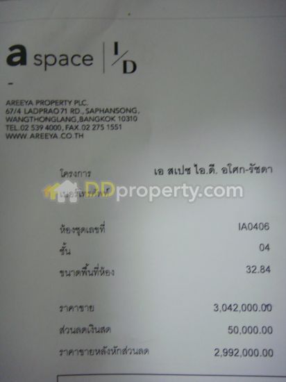 ขายคอนโดโครงการ คอนโด aspace id อโศก-รัชดา - 2480000 บาท ติดต่อคุณ SUPHISSARA SUPHISSARA
