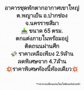 ขาย คอนโด อาคารชุดพักตากอากาศเขาใหญ่ ต.พญาเย็น อ.ปากช่อง จ.นครราชสีมา 65 ตรม. ..