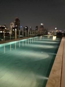 สิ่งอำนวยความสะดวก ฟิตเนส สระว่ายน้ำใหญ่ยาวลอยฟ้า วิวเมืองชั้น25 หัองนั่งเล่น ทำอาหาร ตัดปาร์ตี้ได้ ห้องซักผ้า+อบแห้ง