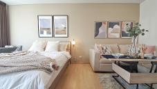 - เตียงนอน+ฟูก, ตู้เสื้อผ้า, โซฟา bed, โต๊ะทำงาน, โต๊ะทานข้าว