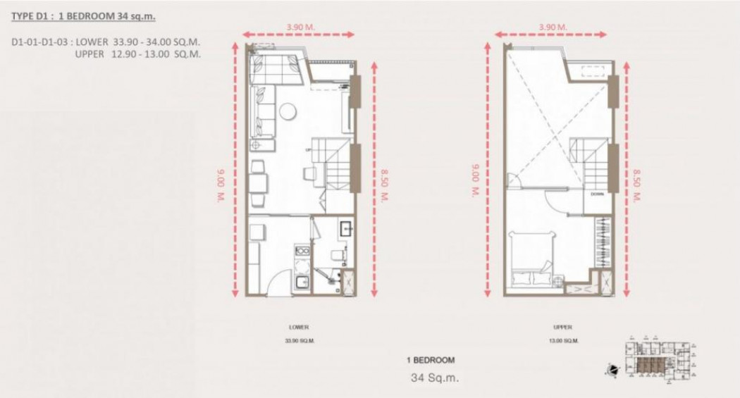 ขนาดพื้นที่ 34.0 ตารางเมตร