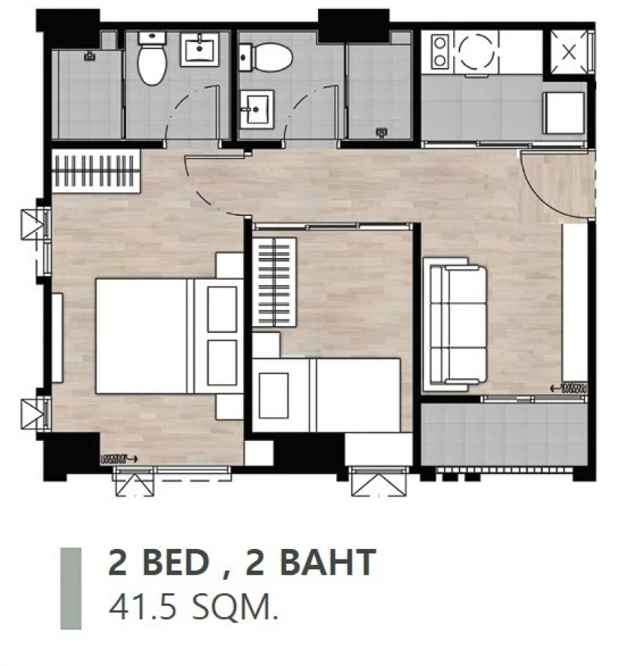 - เตียงเล็ก เตียงใหญ่ 2 ห้องนอน