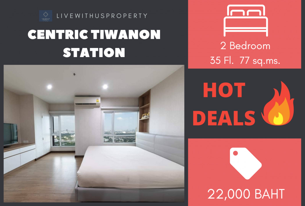 (ว่าง)ให้เช่าCentric Tiwanon - 2นอน 1น้ำ 58ตรม. ชั้น35 ตึกA - Line:@hac55