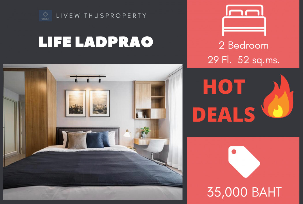 ให้เช่า คอนโด 2 ห้องนอน ไลฟ์ ลาดพร้าว 54 ตรม. ห้องกว้าง เห็นวิวเมือง ทำเลดี ติด BTS และ MRT