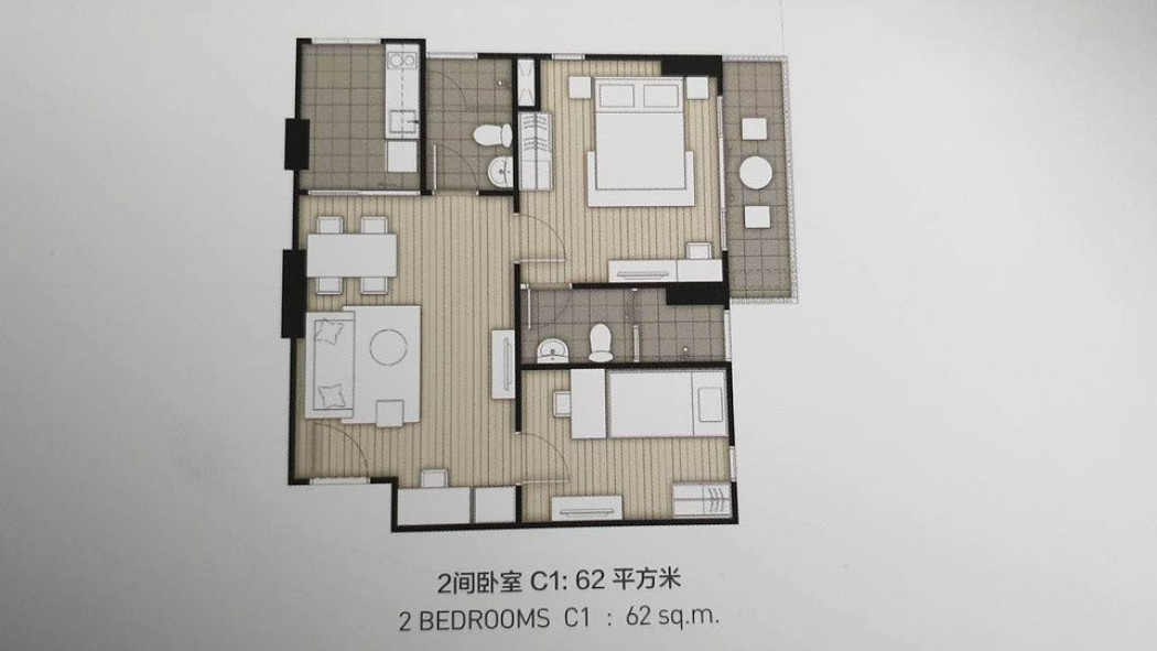 ขนาดพื้นที่ 62.0 ตารางเมตร