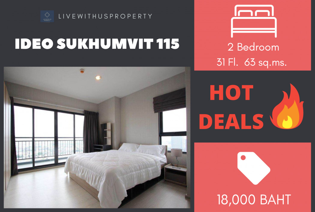 ให้เช่า คอนโด Ideo สุขุมวิท 115 63 ตรม. ชั้นสูง พร้อมอยู่