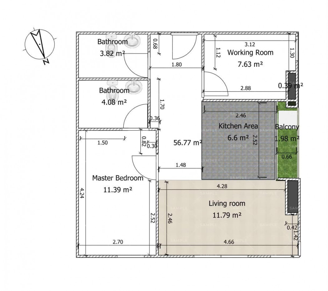 ขนาดพื้นที่ 56.0 ตารางเมตร