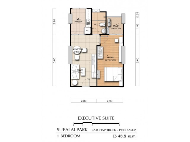ขนาดห้อง 46.0 ตารางเมตร