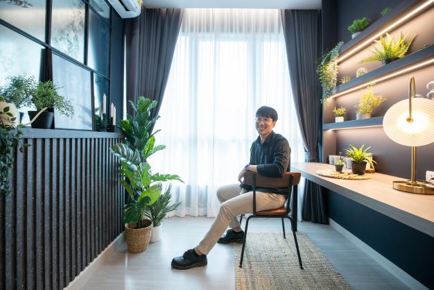พื้นที่ 44.5 ตร.ม. ชั้น 14 (ห้องชุดเลขที่ 3063-0101404) ขนาด 1 ห้องนอนใหญ่, 1 ห้องนั่งเล่น, 1 ห้องน้ำ, และ 1 ห้องเอนกประสงค์ ห้องกว้างเพดานสูง 2.7เมตร
