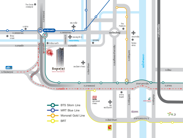ทำเลที่ตั้ง ใกล้ สถานี Interchange BTS/MRT บางหว้า 450 เมตร, รพ.พญาไท 3, ตลาดพลู, เดอะมอลล์ท่าพระ