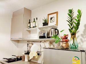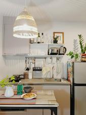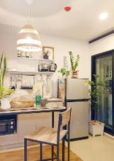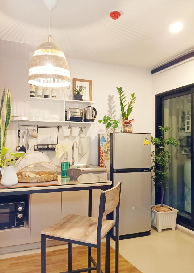 - ห้องครัวพร้อมเครื่องใช้ไฟฟ้า เตาไฟฟ้า2หัว ตู้เย็น ไมโครเวฟ